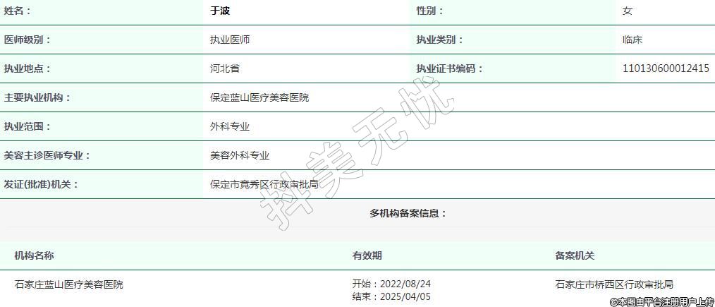 主要執(zhí)業(yè)機(jī)構(gòu):保定藍(lán)山醫(yī)療美容醫(yī)院