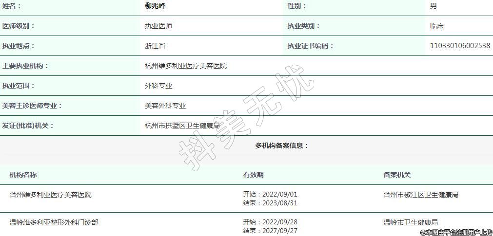 杭州維多利亞醫(yī)療美容執(zhí)業(yè)醫(yī)師