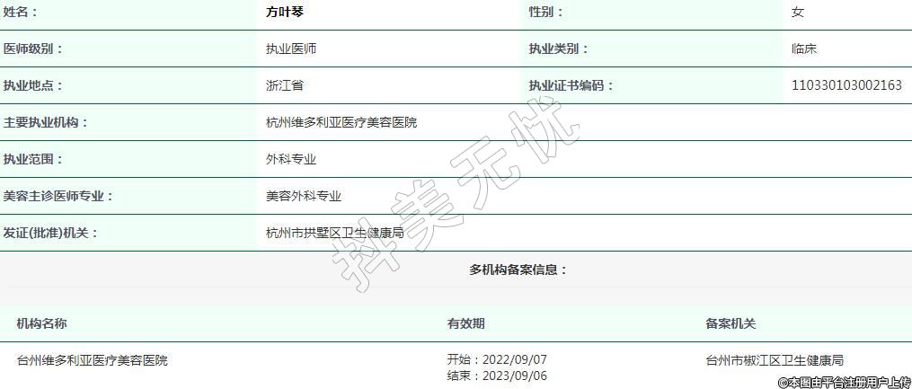 杭州維多利亞醫(yī)療美容執(zhí)業(yè)醫(yī)師