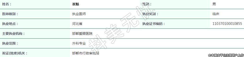 邯鄲愛眼醫(yī)院執(zhí)業(yè)醫(yī)師