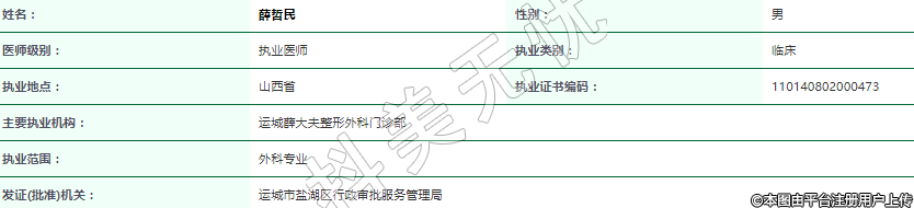 主要執(zhí)業(yè)機(jī)構(gòu):運(yùn)城薛大夫整形外科門診部