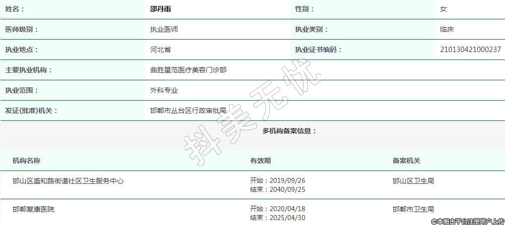 主要執(zhí)業(yè)機(jī)構(gòu):曲勝星范醫(yī)療美容門診部