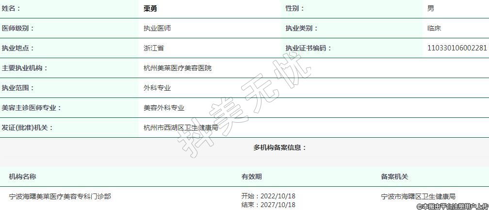主要執(zhí)業(yè)機(jī)構(gòu):杭州美萊醫(yī)療美容醫(yī)院