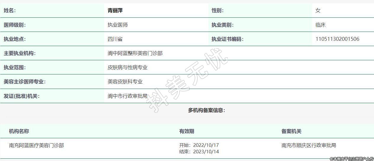 主要執(zhí)業(yè)機(jī)構(gòu):閬中阿藍(lán)整形美容門診部