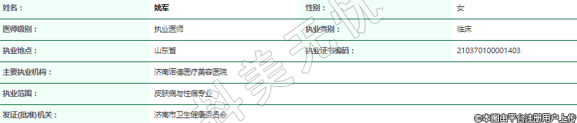 執(zhí)業(yè)范圍:皮膚病與性病專業(yè)