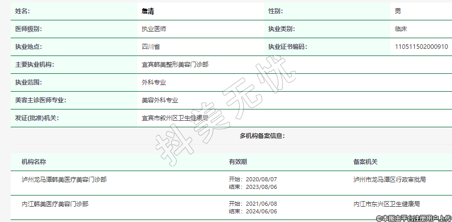 主要執(zhí)業(yè)機構(gòu):宜賓韓美整形美容門診部