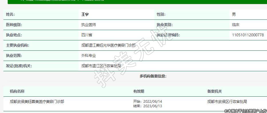 主要執(zhí)業(yè)機(jī)構(gòu):成都溫江美鈺光華醫(yī)療美容門(mén)診部