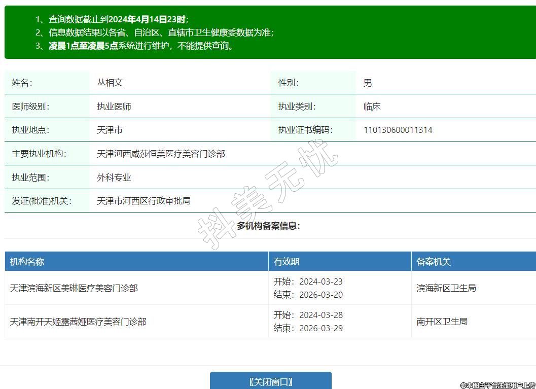 主要執(zhí)業(yè)機構:天津河西威莎恒美醫(yī)療美容門診部