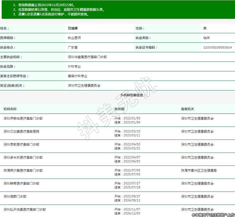 主要執(zhí)業(yè)機(jī)構(gòu):深圳華壹美醫(yī)療美容門診部