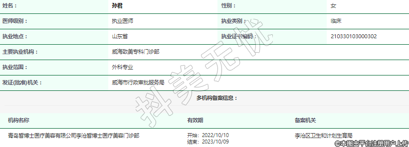 機構(gòu)名稱:青島皙博士醫(yī)療美容有限公司李滄皙博士醫(yī)療美容門診部