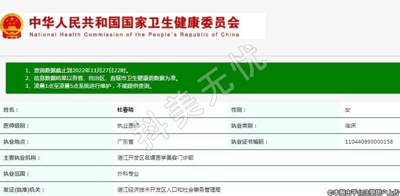 主要執(zhí)業(yè)機構:湛江開發(fā)區(qū)名媛醫(yī)學美容門診部