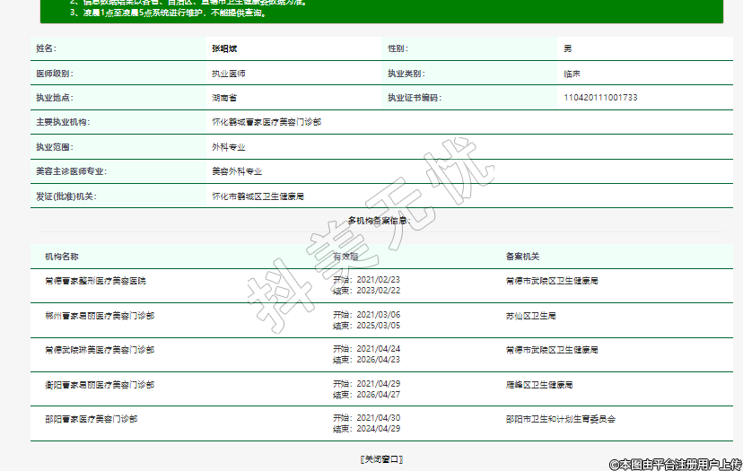 主要執(zhí)業(yè)機(jī)構(gòu):懷化鶴城曹家醫(yī)療美容門診部