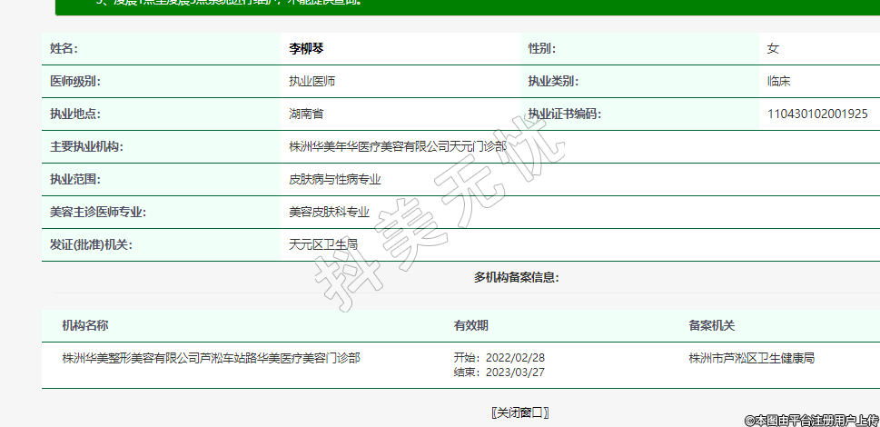 主要執(zhí)業(yè)機(jī)構(gòu):株洲華美年華醫(yī)療美容有限公司天元門診部