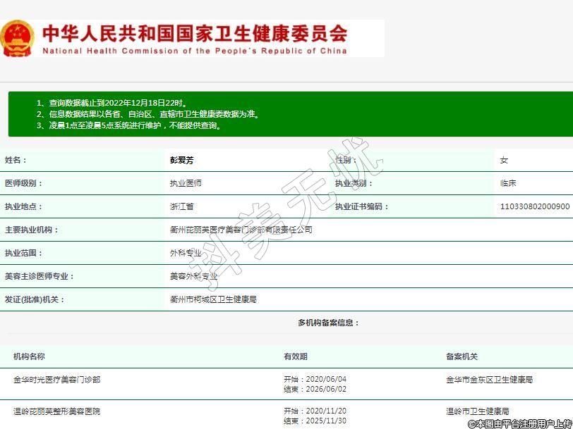 主要執(zhí)業(yè)機構(gòu):衢州芘麗芙醫(yī)療美容門診部有限責(zé)任公司