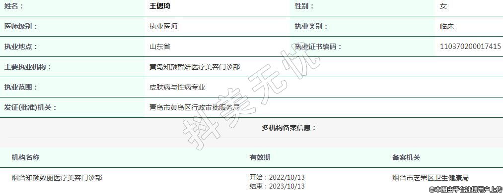 主要執(zhí)業(yè)機(jī)構(gòu):黃島知顏智妍醫(yī)療美容門診部