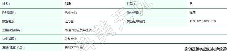 主要執(zhí)業(yè)機構:南通伯思立美容醫(yī)院
