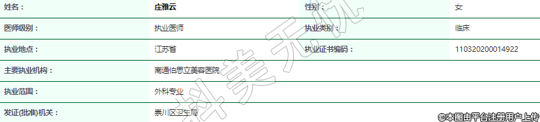 主要執(zhí)業(yè)機(jī)構(gòu):南通伯思立美容醫(yī)院
