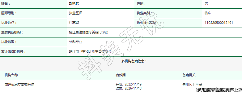 主要執(zhí)業(yè)機(jī)構(gòu):靖江百達(dá)麗醫(yī)療美容門診部
