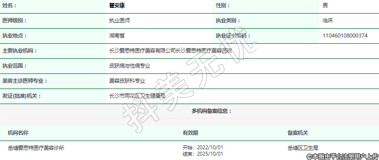 主要執(zhí)業(yè)機構:長沙愛思特醫(yī)療美容有限公司長沙愛思特醫(yī)療美容醫(yī)院