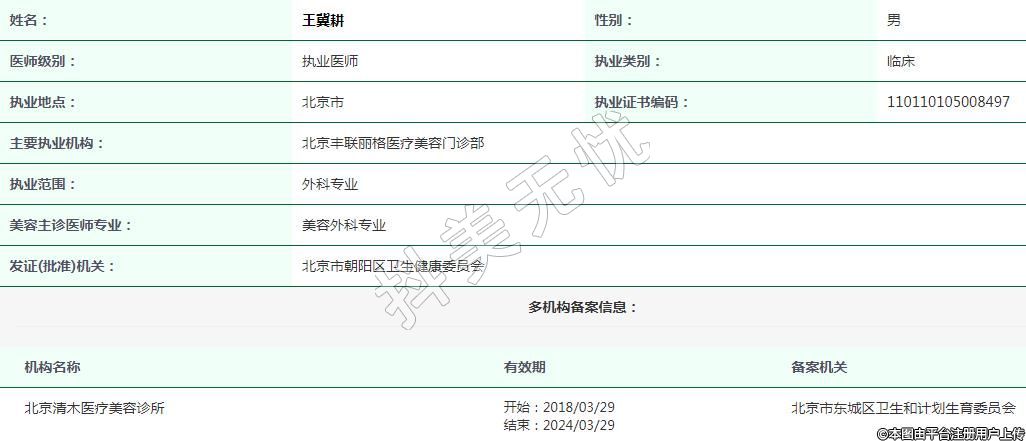 主要執(zhí)業(yè)機(jī)構(gòu):北京豐聯(lián)麗格醫(yī)療美容門診部