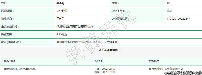 主要執(zhí)業(yè)機(jī)構(gòu):常州曙光醫(yī)療美容醫(yī)院有限公司