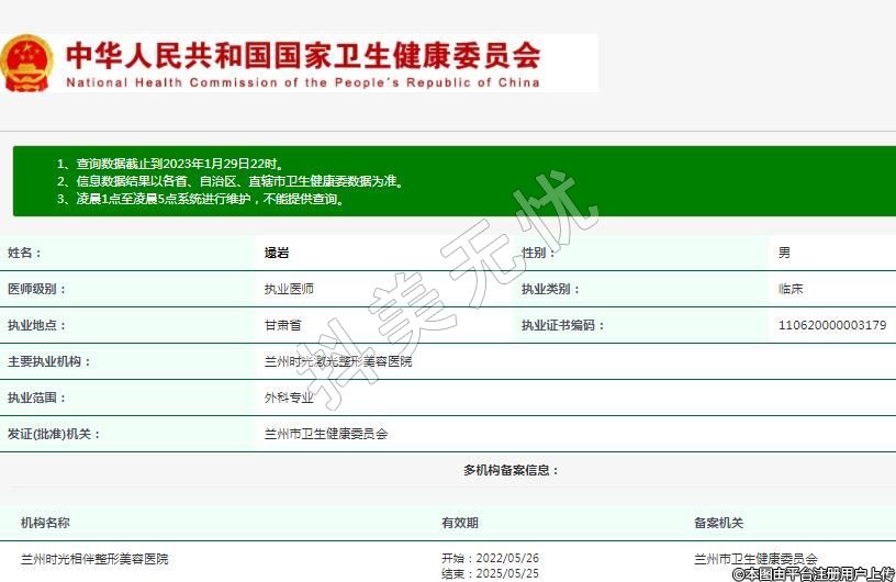 主要執(zhí)業(yè)機構(gòu):蘭州時光激光整形美容醫(yī)院