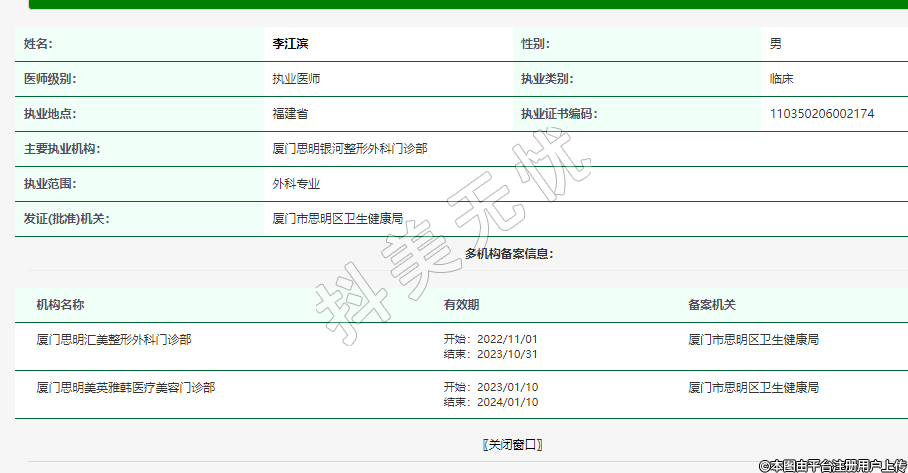 主要執(zhí)業(yè)機(jī)構(gòu):廈門(mén)思明銀河整形外科門(mén)診部