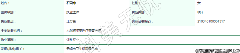 主要執(zhí)業(yè)機(jī)構(gòu):無錫施爾美醫(yī)療美容醫(yī)院