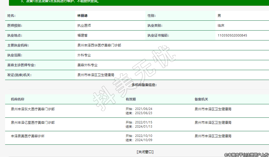 主要執(zhí)業(yè)機(jī)構(gòu):泉州豐澤西華醫(yī)療美容門診部