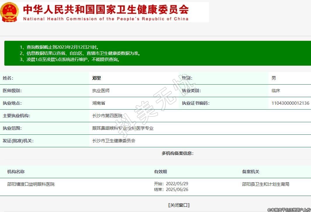 執(zhí)業(yè)范圍:眼耳鼻咽喉科專業(yè);全科醫(yī)學專業(yè)