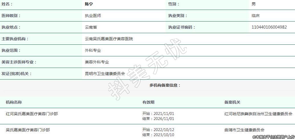 主要執(zhí)業(yè)機(jī)構(gòu):云南吳氏嘉美醫(yī)療美容醫(yī)院