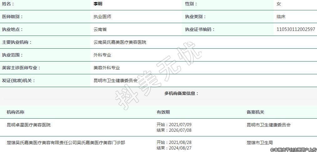 昆明吳氏嘉美執(zhí)業(yè)醫(yī)生
