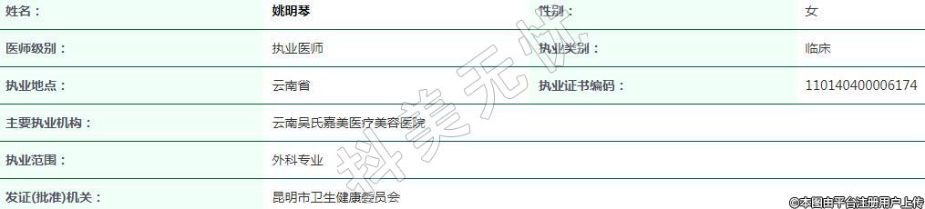 昆明吳氏嘉美執(zhí)業(yè)醫(yī)生