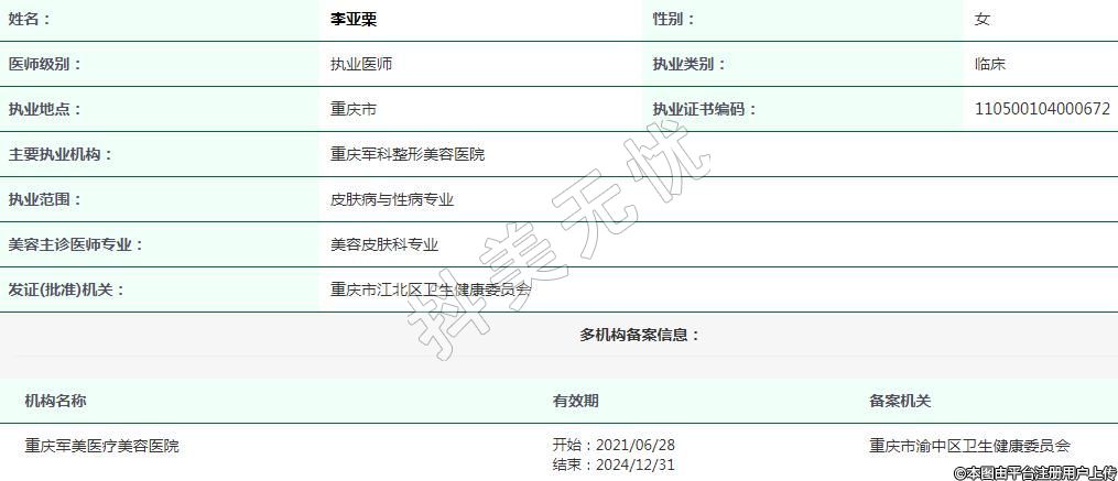 主要執(zhí)業(yè)機(jī)構(gòu):重慶軍科整形美容醫(yī)院