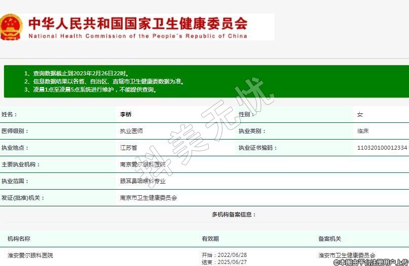 主要執(zhí)業(yè)機(jī)構(gòu):南京愛爾眼科醫(yī)院