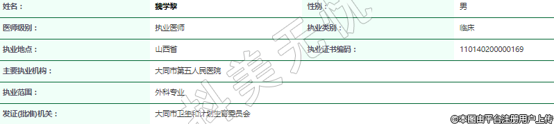 主要執(zhí)業(yè)機(jī)構(gòu):大同市第五人民醫(yī)院