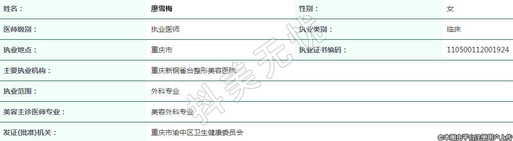 重慶新銅雀臺醫(yī)療美容執(zhí)業(yè)醫(yī)師