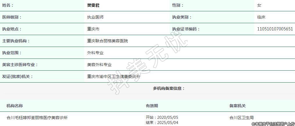 主要執(zhí)業(yè)機構(gòu):重慶聯(lián)合麗格美容醫(yī)院