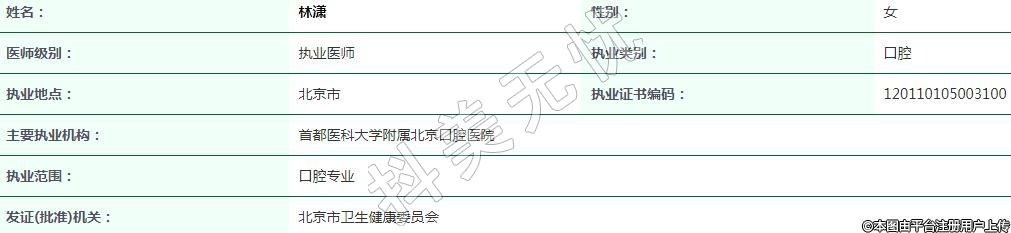 執(zhí)業(yè)范圍:口腔專(zhuān)業(yè)