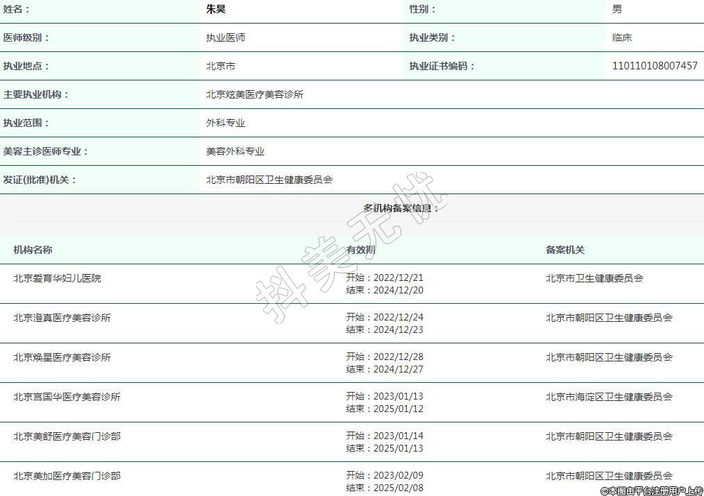 主要執(zhí)業(yè)機構(gòu):北京炫美醫(yī)療美容診所