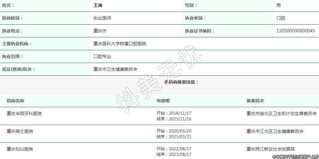 主要執(zhí)業(yè)機構:重慶醫(yī)科大學附屬口腔醫(yī)院