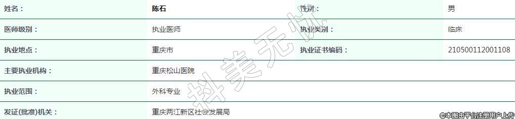 主要執(zhí)業(yè)機(jī)構(gòu):重慶松山醫(yī)院