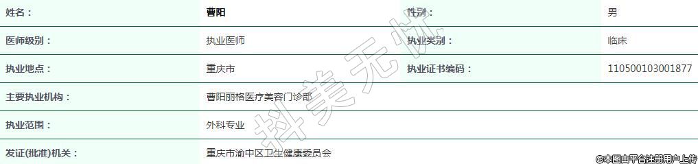 曹陽麗格醫(yī)療美容執(zhí)業(yè)醫(yī)師