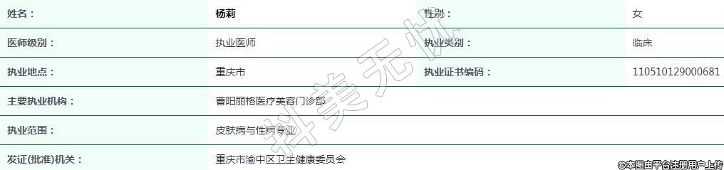 重慶曹陽麗格醫(yī)療美容執(zhí)業(yè)醫(yī)師