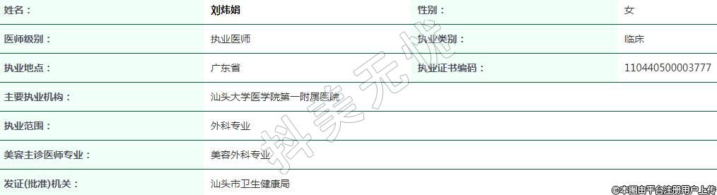 汕頭大學(xué)醫(yī)學(xué)院第一附屬醫(yī)院醫(yī)學(xué)美容執(zhí)業(yè)醫(yī)生