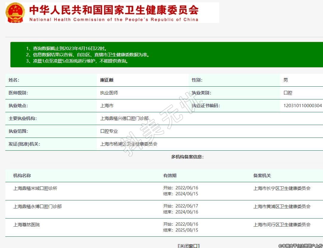 主要執(zhí)業(yè)機(jī)構(gòu):上海鼎植興德口腔門(mén)診部