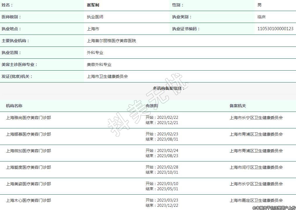 上海微加醫(yī)療美容執(zhí)業(yè)醫(yī)師
