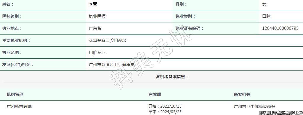 主要執(zhí)業(yè)機(jī)構(gòu):花灣楚庭口腔門診部