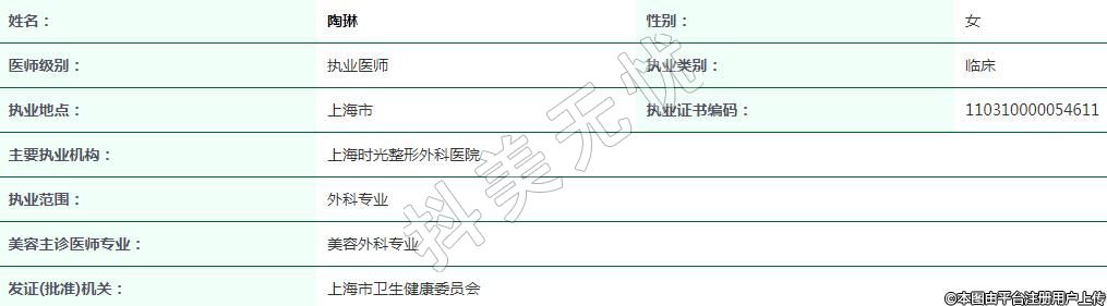 上海時光醫(yī)療美容執(zhí)業(yè)醫(yī)師