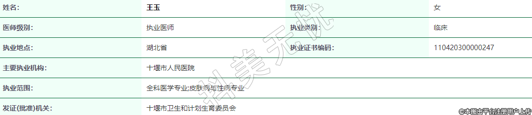 執(zhí)業(yè)范圍:全科醫(yī)學(xué)專業(yè);皮膚病與性病專業(yè)